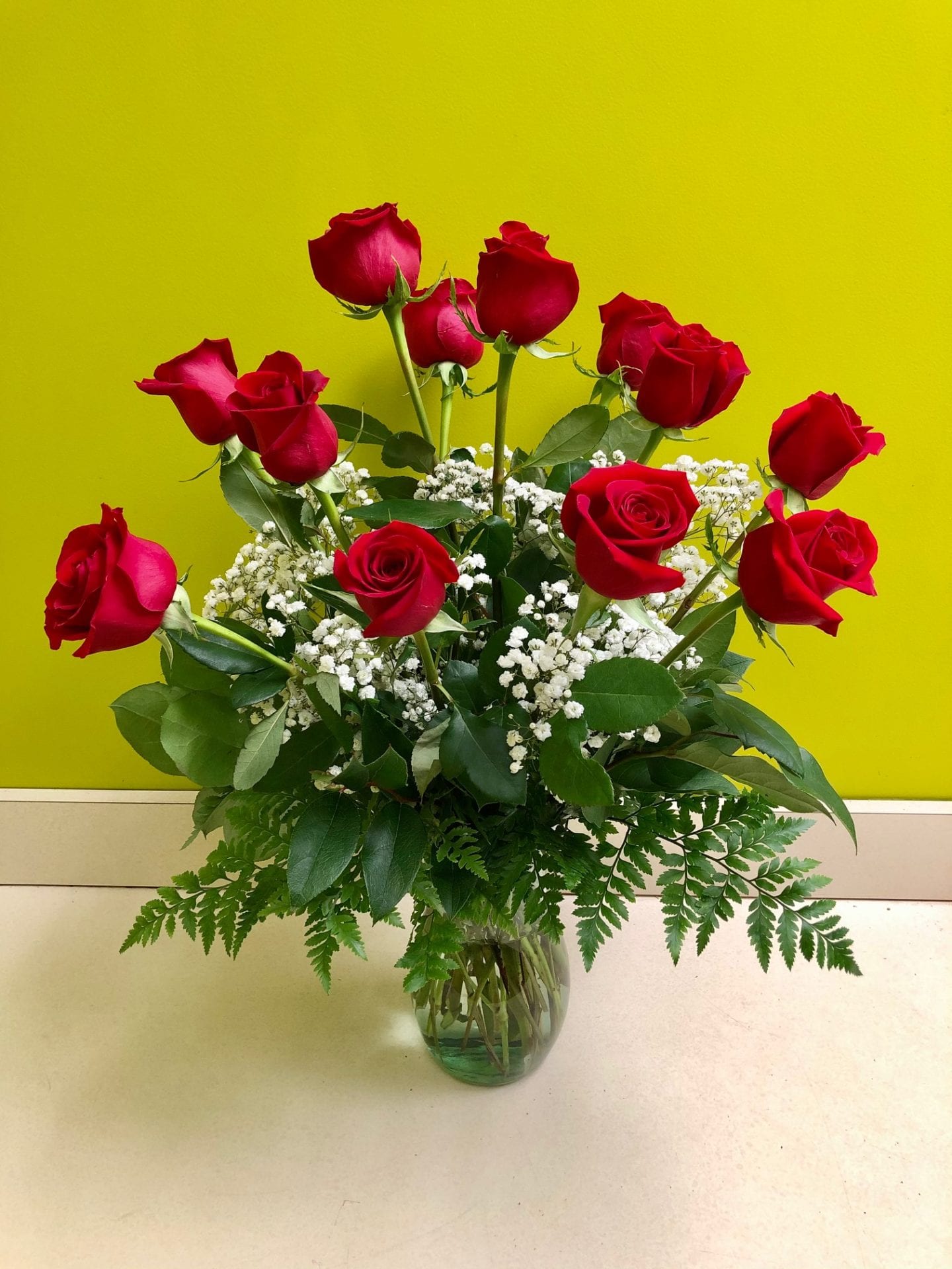 Make their heart skip a beat when you present our classic arrangement of one dozen roses. This presentation of fresh long stemmed red roses is arranged in a classic glass vase. You can also upgrade your order to two and three dozen roses.