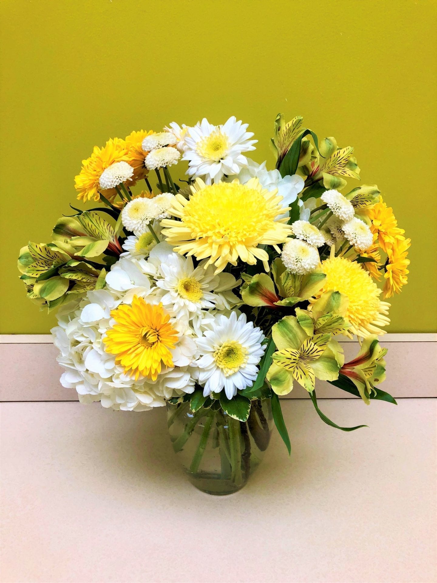 This happy array of, yellow and white flowers is as refreshing as a glass of lemonade on a hot summer day.