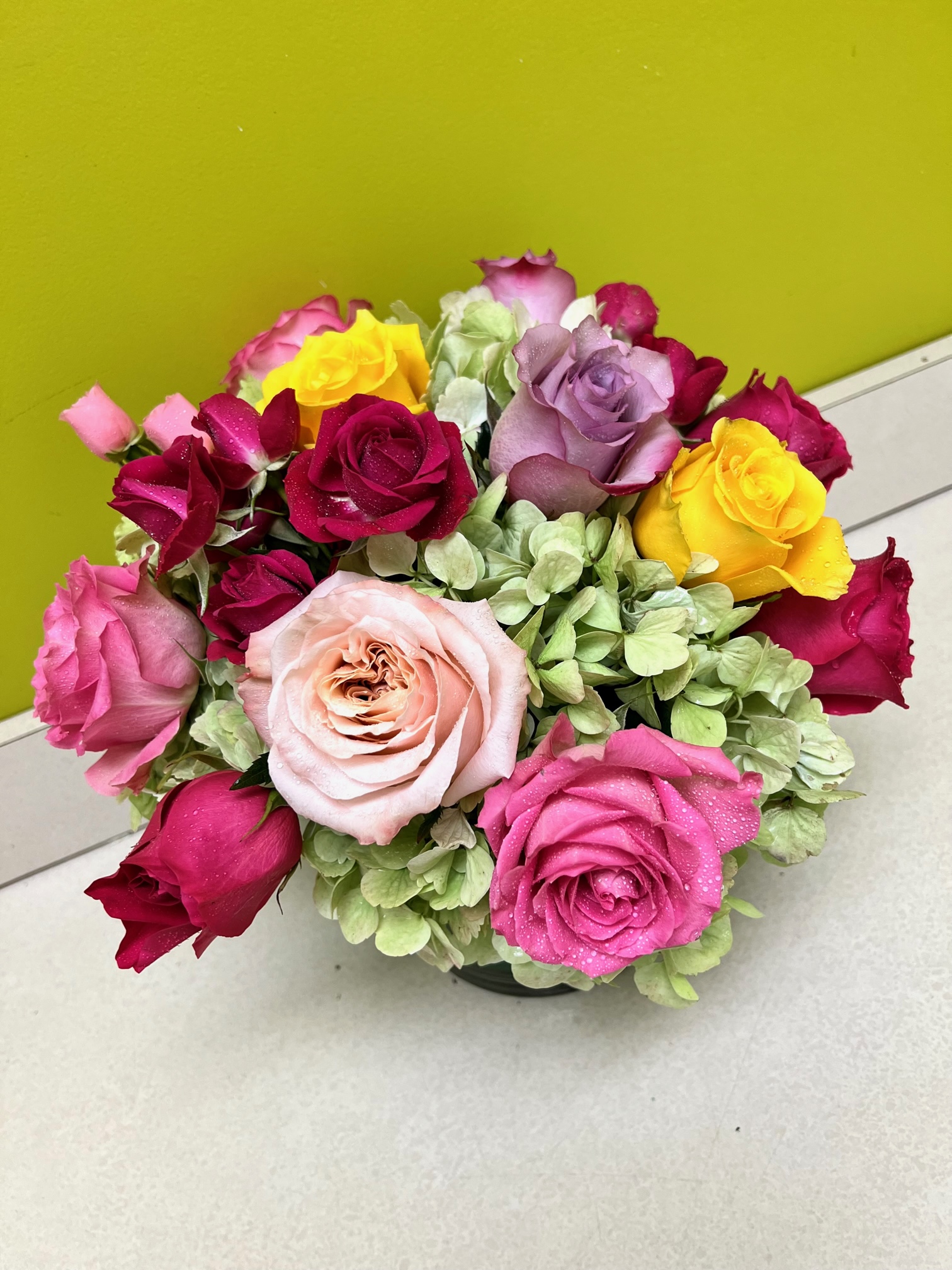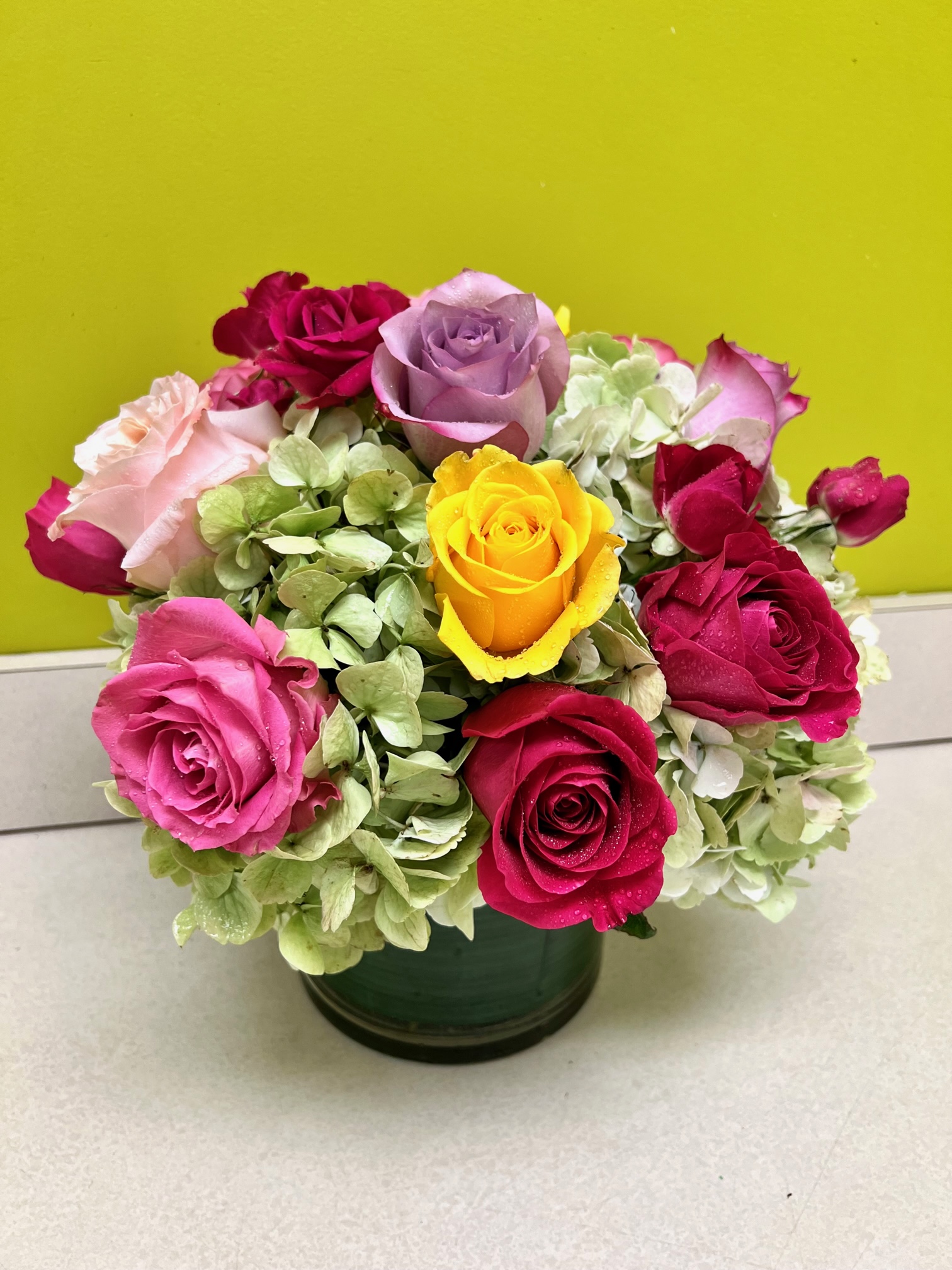 You know someone magnificent, so treat them or your magnificent self to something special. Our “Magnificent” arrangement features an assortment of colorful blooming roses on a bed of lush hydrangea blossoms. How fabulous is that!