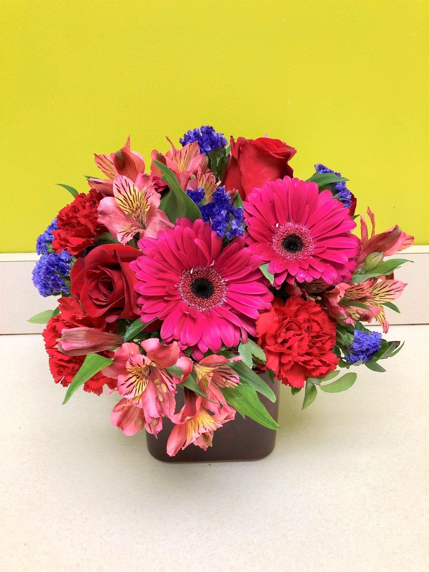 Rich, romantic, and irresistibly dramatic, this arrangement features velvety red and burgundy-toned blooms, including lush roses, for a look that feels bold, passionate, and timeless. The perfect choice when you want to make a statement straight from the heart.
