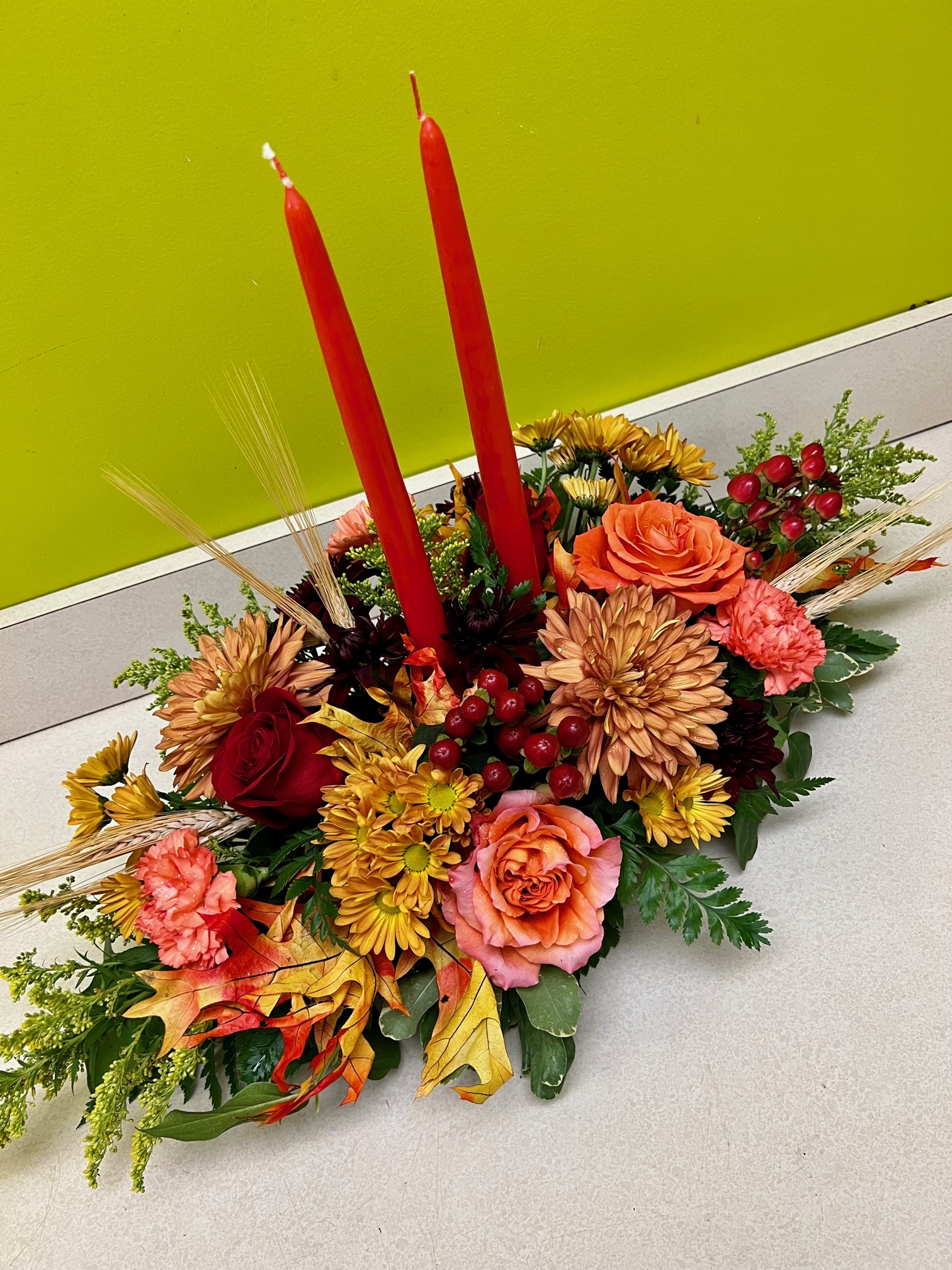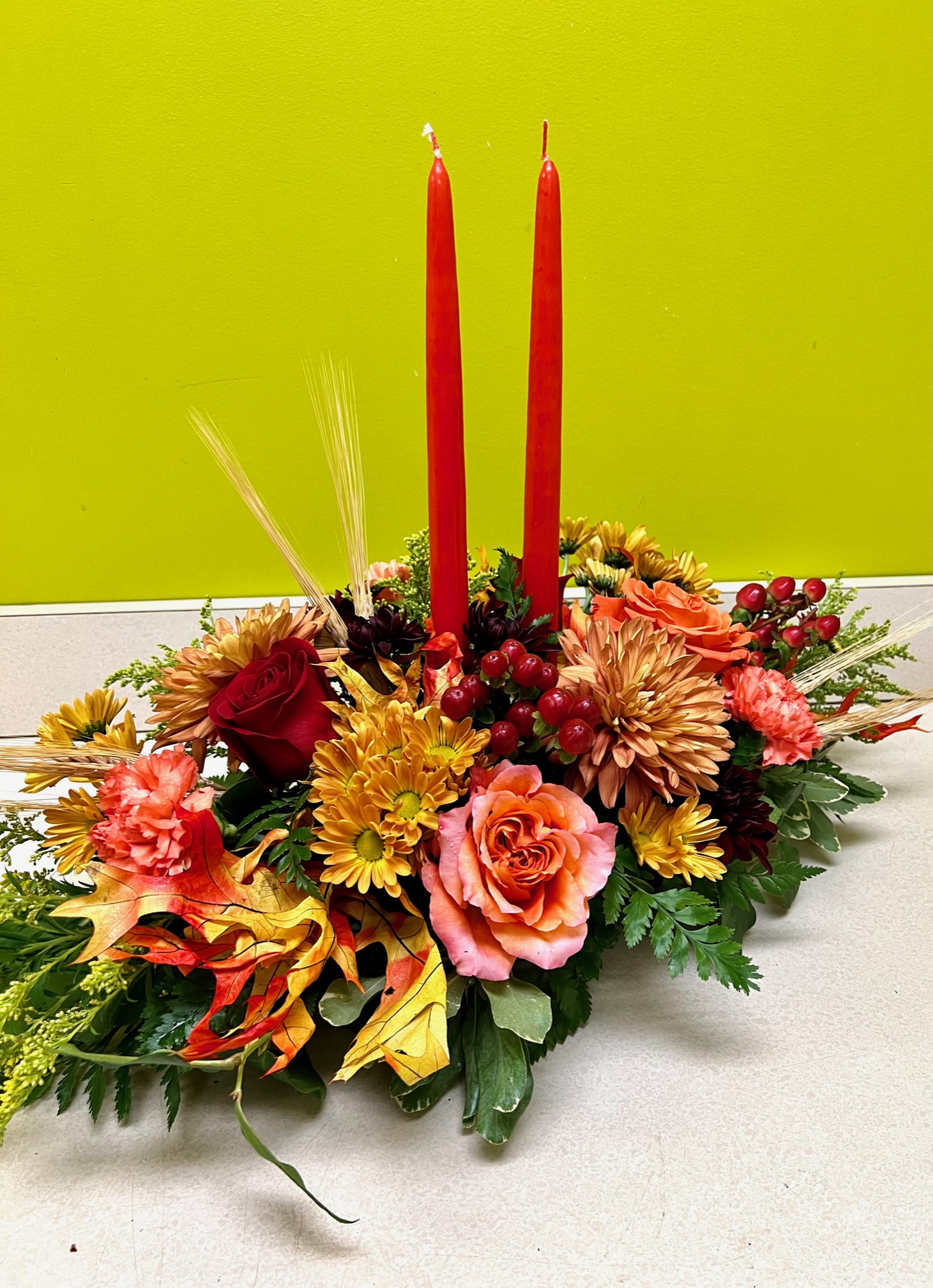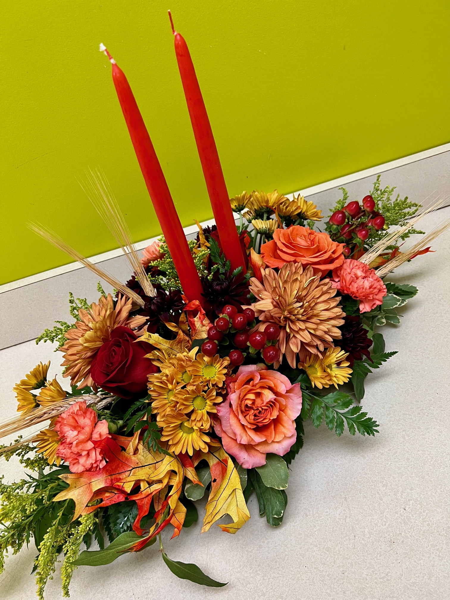 Accentuate your Thanksgiving Day feast with this beautiful centerpiece bursting with the colors of the season.