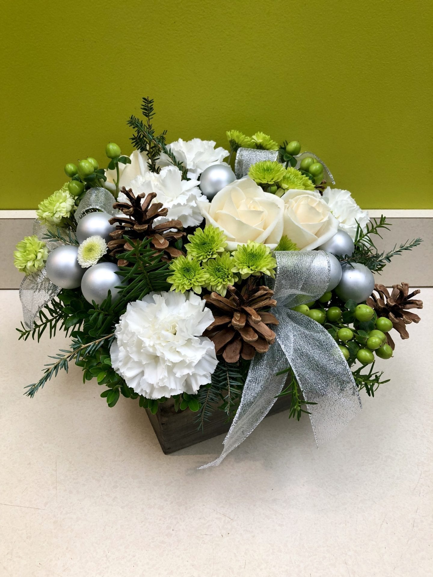 Soft, delicate and serine just like the start of winter. This can be used as a table centerpiece or be placed anywhere you want some holiday cheer.